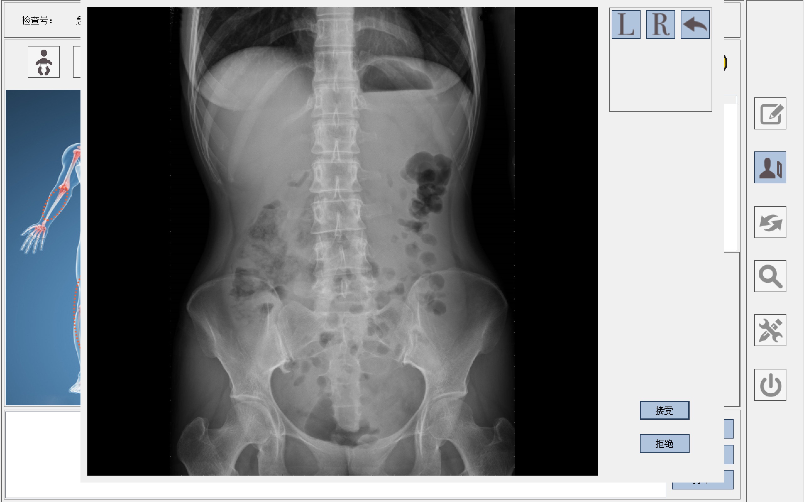 1. X射线性质实验功能:X线的视野调整;kV与射线的能谱关系(边界吸收限);射线的散射特性。 2.DR人体检查技术: 支持超过80个摄影体位。 3. 实时模拟计算患者的照射剂量和相应的球管热量。 4. DR图像可实现随多参数实时变化。 ★5.扫描完成后,可生成标准dicom图像。 6.生成的dicom图像可进行图像后处理。